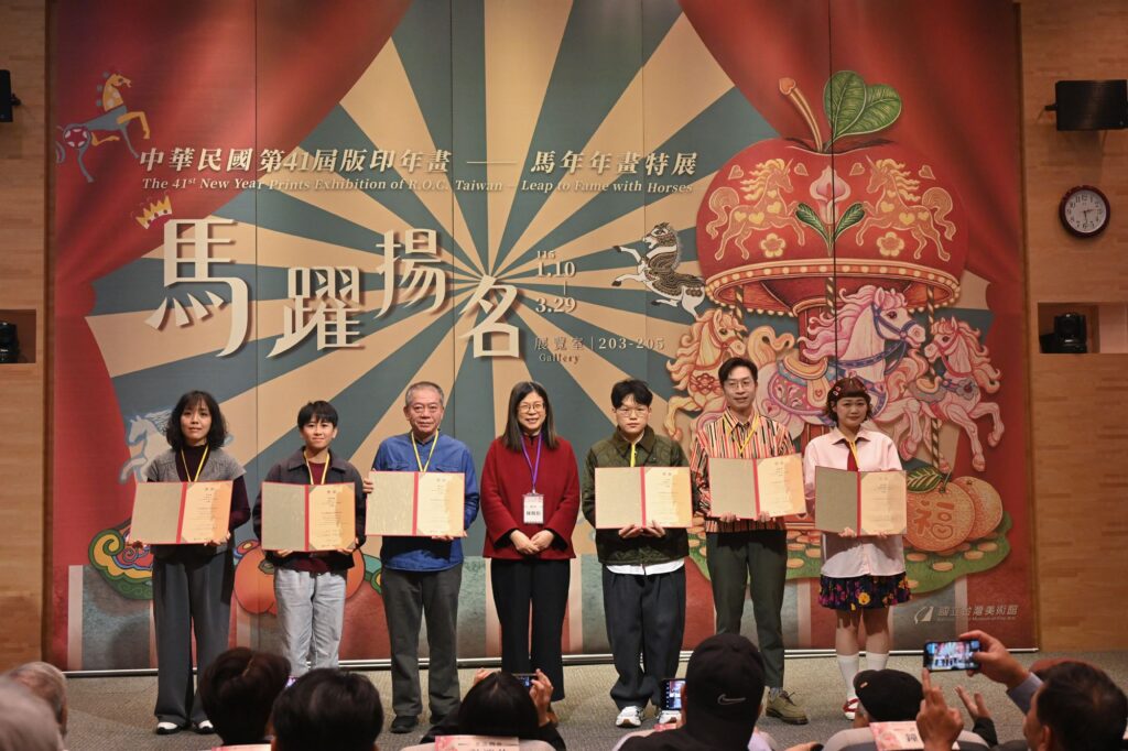 「中華民國版印年畫徵選活動」自1985年開始辦理,今年邁入第41屆,共有164件作品參與徵選,經多輪評選擇出首獎6件、優選10件、佳作20件及入選52件展出。第41屆版印年畫以「馬躍揚名」為主題,寓意人人都能像馬一樣奔騰向前、成功進取、活力洋溢。