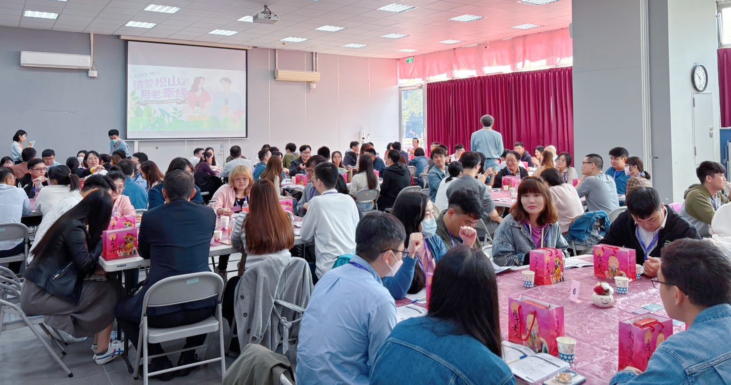 臺北市松山區公所與松山霞海城隍廟聯手主辦《植愛松山・月老牽緣》單身聯誼活動,已於11月23日(週日)圓滿落幕!這場集結了百位優質單身男女的聯誼盛會,從報名時民眾就反應熱烈,吸引633人報名,活動當天透過有趣的互動、手作多肉植栽、美味Buffet午宴,讓參加者迅速熱絡互動,充滿了歡樂笑聲,最後有32對配對成功,配對率高達六成五,滿意度高達九成二,讓所有參加者都一致讚同:「松山區單身聯誼活動太棒了!」