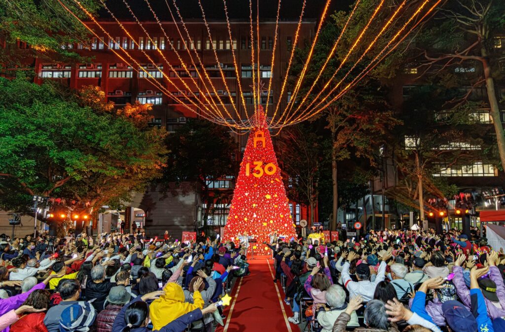 在教育部常務次長朱俊彰、校長陳慶和、校友總會理事長粘舜權、億光董事長葉寅夫等嘉賓帶領下,全紅聖誕樹在倒數聲中光華綻放,象徵教育持續向前、公益繼續傳遞。嘉賓揮舞星星棒合唱〈平安夜〉,場面溫馨感人。