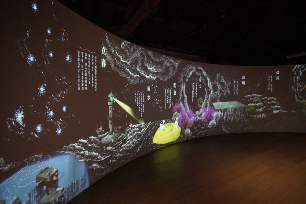 展覽核心作品《四季Seasons》為沉浸式數位藝術創作,由策展人黃心健取材自詩人向陽〈四季〉詩作發展影像轉譯。作品於今年9月先在義大利米蘭 MEET Digital Culture Center 展出夏、秋篇章,深受國際關注,本次則為臺灣首次完整呈現。作品以大規模投影與數位木刻般的視覺風格,構築島嶼四時遞嬗的意象,並收錄向陽朗讀詩作的聲音,使詩韻、影像與節奏交織,帶領觀眾進入文學與多媒體共構的詩意場域。