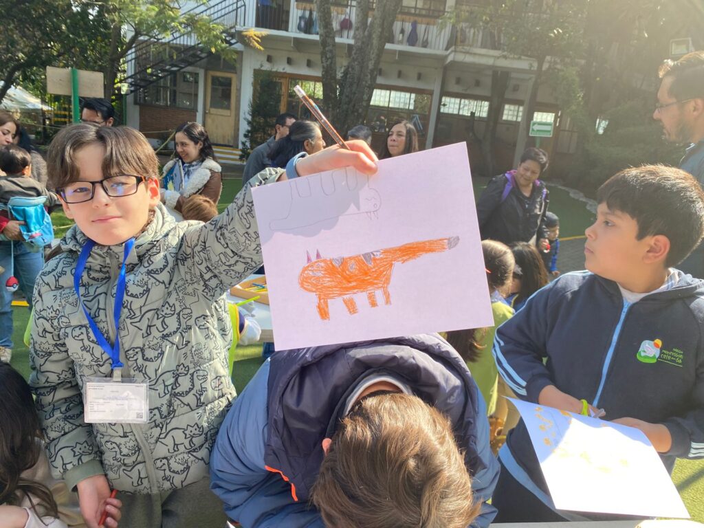 薛慧瑩在當地學校帶領工作坊,與小朋友一起製作貓咪書籤。