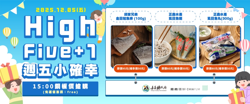 嘉義縣政府今年建立「嘉義優鮮水產電商平台」,集合優質漁產供應鏈,讓民眾能以更便利的方式選購在地新鮮水產品。平台於11月開站後,陸續推出多項優惠活動,成功吸引大量消費者加入會員,並體驗線上選購、產地直送的購物模式,讓嘉義優鮮水產品從產地直達民眾餐桌。