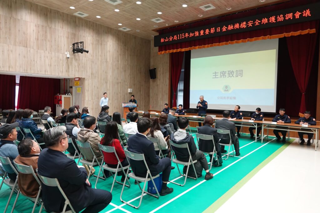 【民眾新聞方笙楠/臺北報導】松山分局鑑於農曆新春將屆,年節採買人潮及大額提款需求增加,加上近年國際金、銀等貴金屬價格不斷攀高,金融機構及珠寶銀樓等財匯處所交易金流熱絡,27日(星期二)下午2時召開「金融機構安全維護協調會議」,特邀轄內金融機構及金銀珠寶業者,共同與會交流守護年節治安。