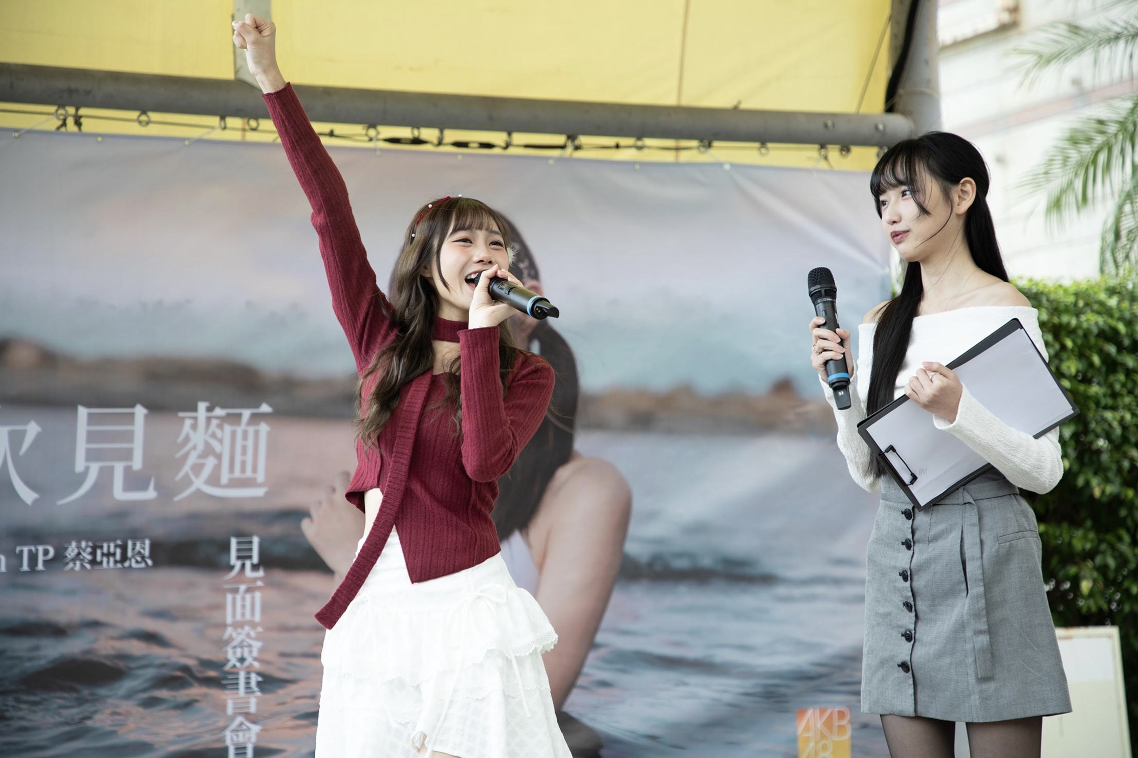 除了家人力挺,AKB48 Team TP 成員們也在背後暖心撐腰。蔡亞恩特別提到,成員 伊品 親自到場擔任活動主持,讓她安心不少,「如果一開始只有我一個人站在台上,我應該會緊張到發抖!」而活動開始前,她也收到成員 劉曉晴 傳來的加油打氣訊息,讓她直呼真的被成員們撐住,「很謝謝大家一直在背後支持我、替我撐腰。」