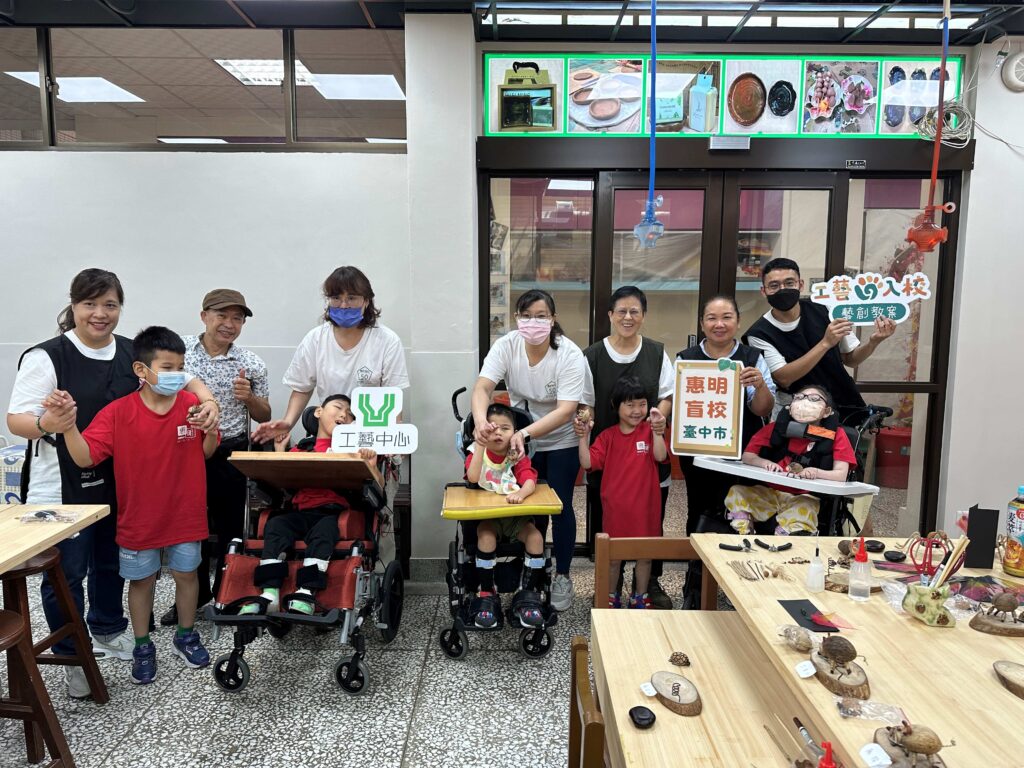 臺中市霧峰區五福國小賴如足校長提到,學校透過工藝中心支持,開設「構樹皮燈飾」創作課程,並延伸為「小手牽大手」活動課程,讓學生帶領社區長者共同創作,使工藝成為跨世代共享的生活美好。臺中私立惠明盲校則以觸覺開啟工藝視野,揭金鳳老師分享,課程以觸覺、聽覺、嗅覺作為主要體驗管道,讓視障及多重障礙學生透過材料的溫度與質地「看見」形體之美,學生們透過果實、葉脈等自然媒材創作,展現超越視覺限制的純粹創造力。