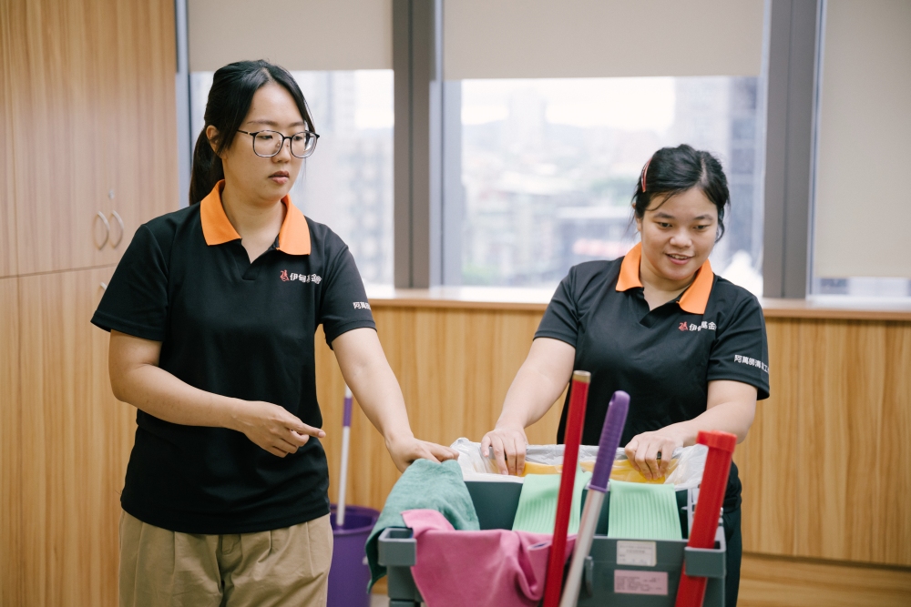 在庇護就業服務的現場,陪伴不是抽象理念,而是每天與員工們一起工作、一起面對挑戰的真實行動。伊甸基金會阿萬師清潔工作隊就服員蔡依靜,自108年起投入庇護職場服務,即使擔任管理職,她仍堅持站在第一線,與庇護員工一同執行清潔作業示範流程與溝通協作。她說:「因為從基層做起,我非常知道他們在哪裡卡住,也更清楚自己能提供什麼幫助。」這不只是專業,更是一種職責的實踐。