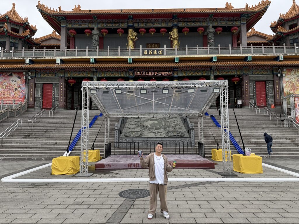 第一屆「神行盃國際四驅車大賽」將於(2/20、21)春節初四、初五於桃園護國宮登場。草爺今(7日)率工作團隊進行預演把長達5000公尺的四驅車軌道於廟埕架設完成,整體設計將軌道安置於廟埕、登殿階梯、龍柱、石獅等一氣呵成,更巧思規劃於天公爐前,設置轉換道,象徵透過神明加持轉運,充分展現四驅車競技、親子互動與太子爺信仰與廟方地景結合;更值得一提的是,草爺還把電競直播的模式來進行賽事轉播,尾聲還加入了百萬煙火施放。草爺說:「這是台灣的第一次!」