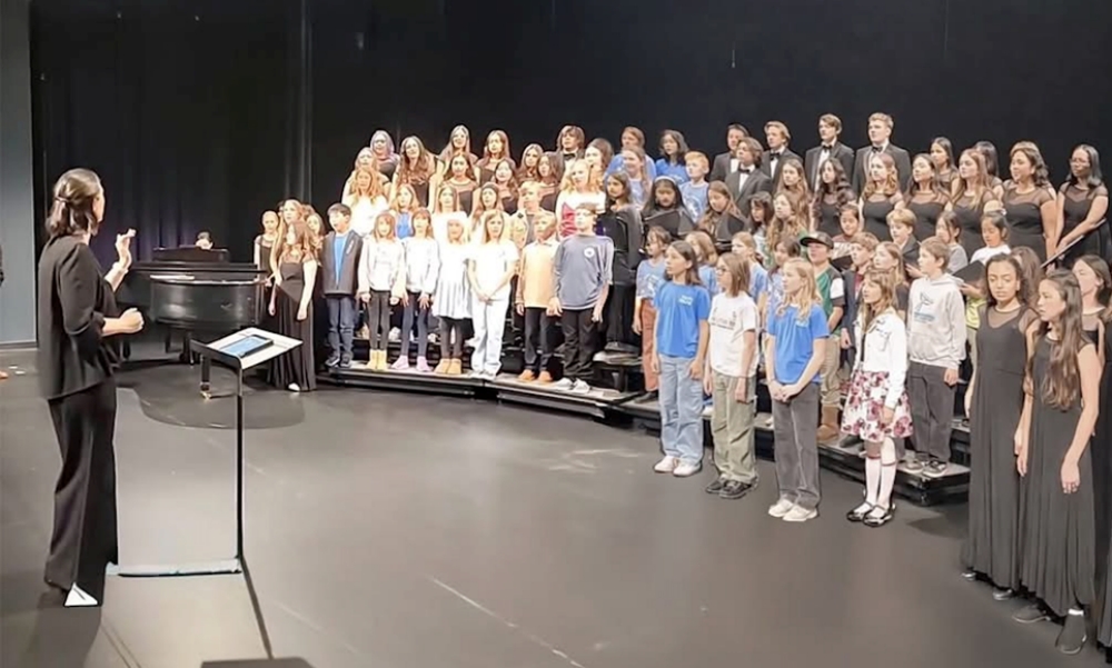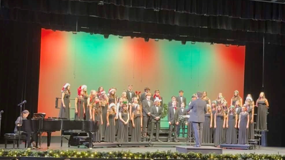 圖▲林采瑩於新港-梅薩學區的聯合音樂會中,為學區內的小學、國中與高中生擔任合唱伴奏。(圖/林采瑩提供)