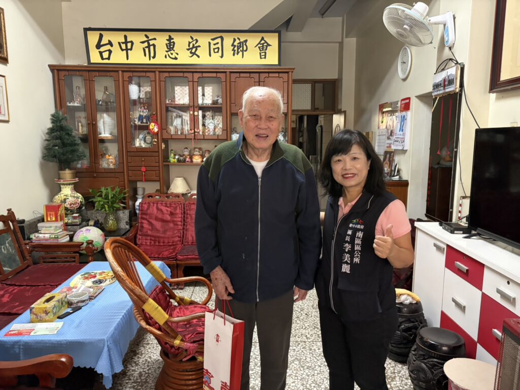 李美麗表示,百歲人瑞不僅見證了時代的變遷,更是家庭與社會珍貴的智慧資產。市長盧秀燕始終將長者照顧視為施政重點,特別在歲末年終之際,希望透過實際行動,將祝福與溫暖親自送到長輩身邊,讓長者感受到市府如同家人般的陪伴與關懷。