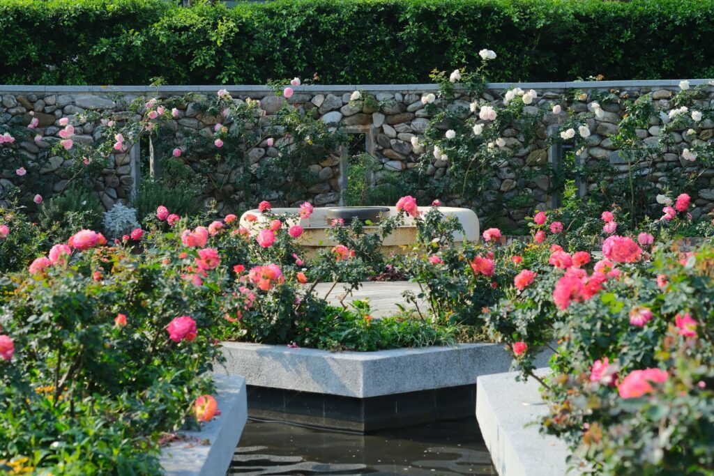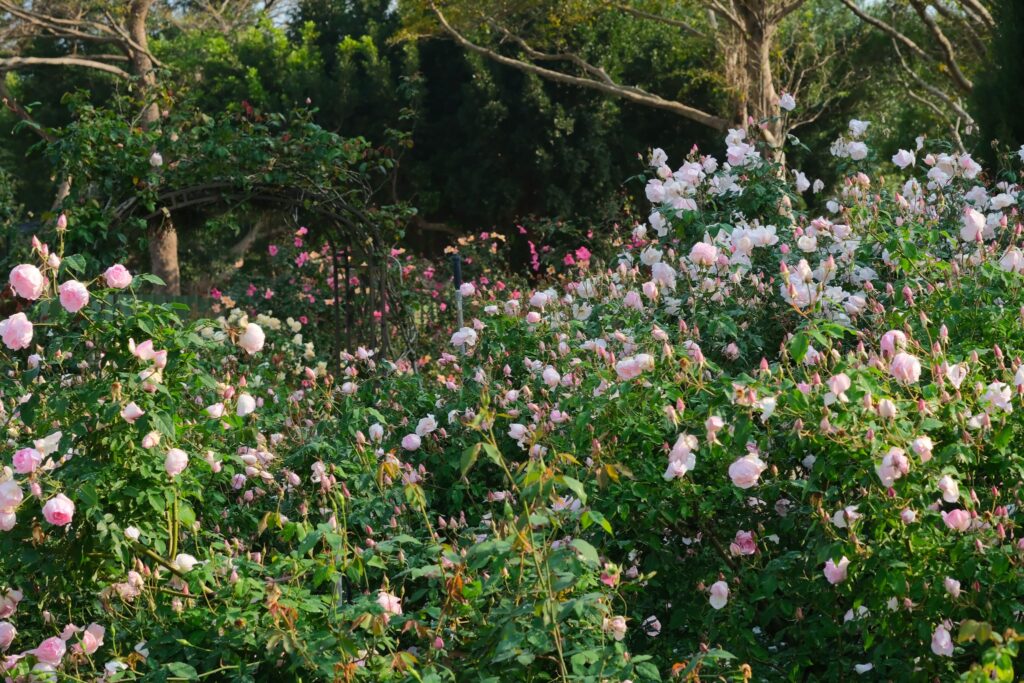 臺北玫瑰園落座於花博新生公園內,以其全年無休、海納各國玫瑰品種、婚紗拍攝地及飛機航線等特色聞名,每年春季的花展更是吸引超過30萬人來訪,帶動玫瑰花風潮及花展經濟!今年度因應「玫感藝象」主題,園區內更是能夠看見臺北市立美術館藝術品與花海美景相映,如李榮豐藝術家創作的「生機」,以不鏽鋼為媒材展現植物的生長動態、郭清治藝術家的「大地」,以黑花崗石雕鑿描摹出大地的溫柔慈愛、另一作品「聚結的空間」利用非現實且抽象之處理,詮釋存在且現實空間之緊密無奈,三件作品落作於花園間,彷彿開啟一場花卉與藝術的對話,往玫瑰園旁走去,還有全新以歐式典雅概念設計的玫瑰公廁,提供大家更便利舒適的空間,往後走可以看到全臺第一座迷宮花園。另外園區內還有臺北典藏植物園,展示了臺灣6大生態區的植物系統,遊覽一圈就能夠看到台灣平地至高山的植物,歡迎大家來到現場發現獨特的生態景致,如有需要也可以至臺北典藏植物園官網預約導覽員,更深入了解園區的特色植物!
