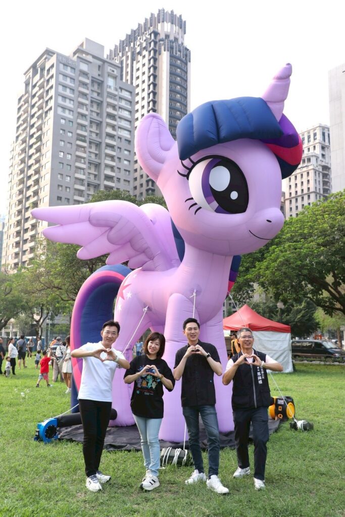 今年活動規格「超進化」,首度邀請全球巨星「彩虹小馬」跨界助陣,在草坪上矗立起全台首座 5 公尺高的「紫悅」大型氣偶,讓路過的民眾直呼:「太萌、太好拍!」