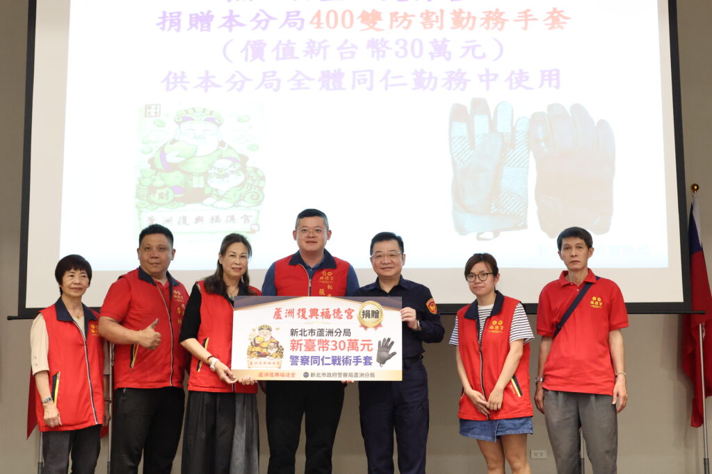 為提升員警執勤安全與防護能力,復興福德宮秉持回饋地方、關懷警政之公益精神,慷慨捐贈蘆洲分局戰術防割手套400雙,總價值新臺幣30萬元,以實際行動支持警察同仁,強化基層警力執勤裝備。