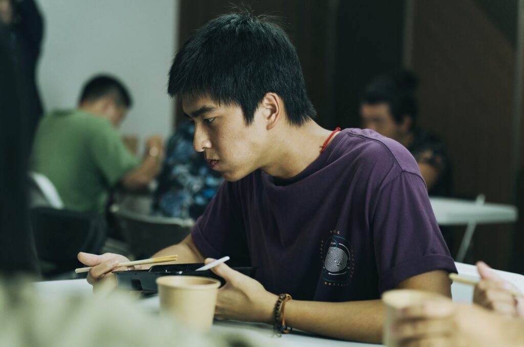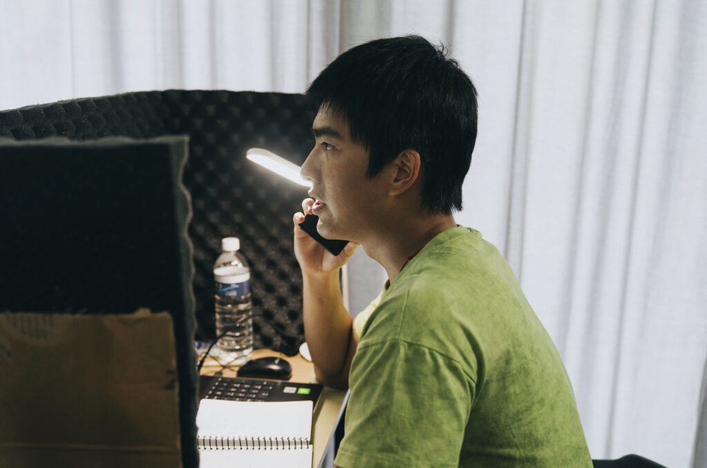 導演蔡銀娟透露,Yang是一名曾在育幼院成長、長大後必須自力更生的年輕人,而這個角色是源自報導者《廢墟少年》中兩個原型人物的結合。曾敬驊也分享,角色因為必須扛起經濟重擔,嘗試過各種工作,最終在朋友介紹下前往海外,進入「打工度假型態」的電話詐騙工作。片中可見Yang與團隊中的少年們反覆練習詐騙話術:「主要通知你,你的手機號碼目前有違法使用的情況,將在兩個小時之後停機。」看似制式冷靜的台詞,層層壓力與控制的累積。蔡銀娟指出,片中呈現的詐騙型態並非新聞上提到的柬埔寨園區詐騙集團,而是從很早以前,以「打工度假」為包裝,由主事者租下豪宅,帶著一群年輕人出國集中居住,並要他們執行電話詐騙的工作。Yang在詐騙集團監控之下,生澀地反覆練習話術:「你好 主要通知你⋯⋯」身旁身上有刺青且兇狠的大哥立刻打他糾正,突顯這些年輕人早已身處高度控制與壓迫之中。