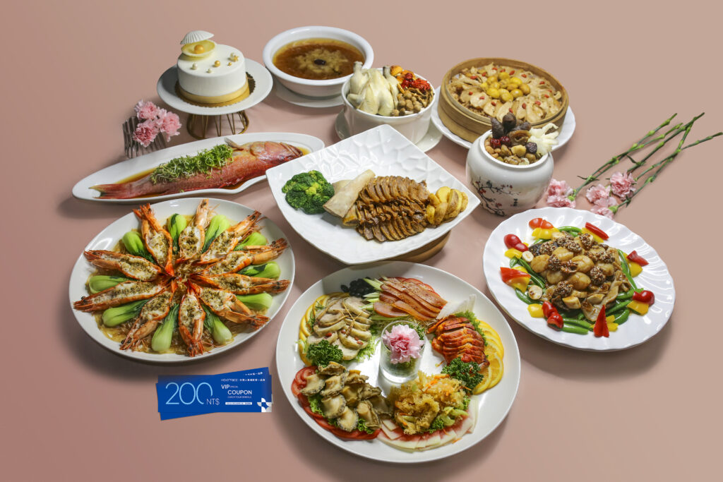 餐飲方面,3樓江南村與16樓海華樓於5月1日至3日及5月9日至10日推出母親節中式桌宴,並加贈6吋母親節蛋糕。菜色以高端食材結合養生概念,涵蓋台塑牛小排、蔥油玉露紅條斑、膠原烏參佛跳牆與松露銀絲海虎蝦等十道料理,強調澎湃與精緻兼具。3F覓舍全日餐廳則推出雙人與四人分享餐,鎖定小家庭與年輕族群,提供多元用餐選擇。