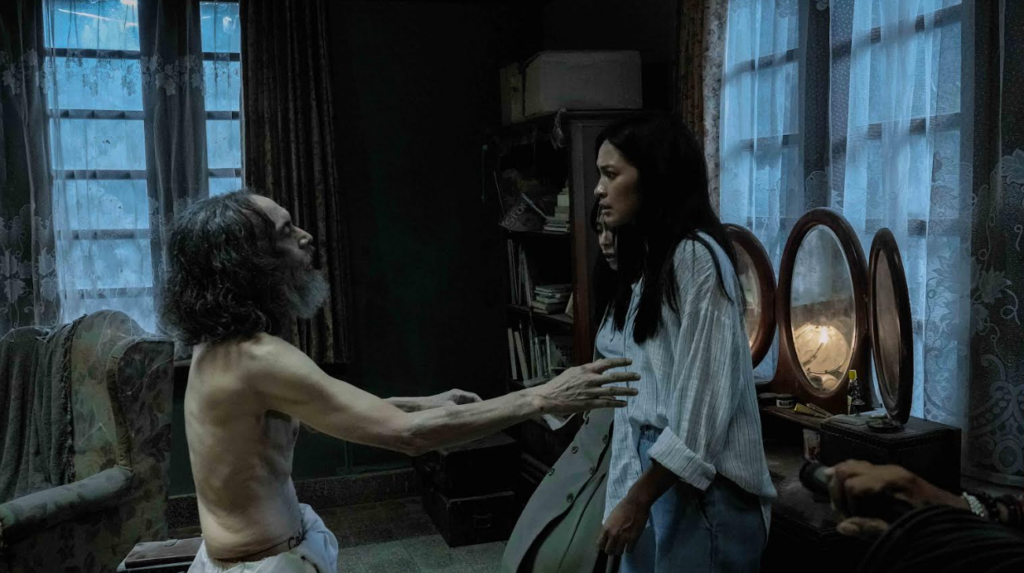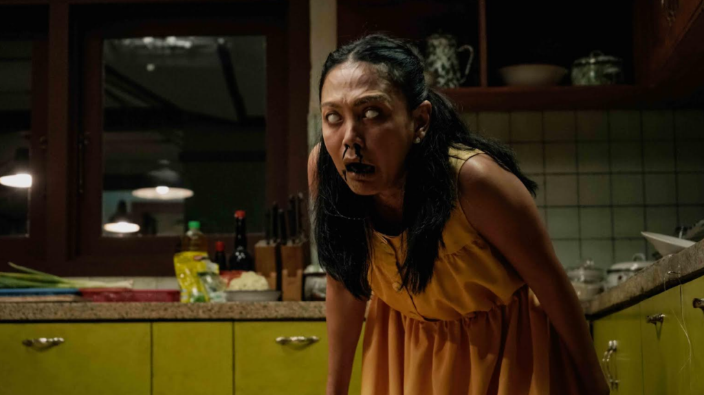 電影【屍咒還魂】改編自在印尼網路上話題不斷,Twitter有百萬人次追蹤的網路作家@SimpleMan所著的靈異短篇故事。@SimpleMan因其現象級的恐怖故事【鬼舞村】而在社群媒體上聲名大噪,該作2022年被改編成電影,成功吸引超過一千萬名觀眾,在印尼當地取得巨大成功,同時也在東南亞其他地區獲得廣大迴響。他的其他恐怖故事作品也接連被翻拍成電影,引發一陣恐怖旋風。【屍咒還魂】是第四部改編自@SimpleMan作品的電影,不同於前面三部作品,本片的原作故事連載尚未完結,因此電影劇情的走向,引發眾多忠實讀者的熱切關注。由擔任過多部印尼人氣電視劇、電影的編劇、導演烏琵阿維安托執導,這也是烏琵首次挑戰執導恐怖電影。找來近年人氣水漲船高的女星漢娜普里南蒂娜、亞薩明賈塞姆飾演主角姊妹哈妮芙和伊絲蒂,兩人一同回到爪哇老宅,不僅親眼目睹了姑丈的慘死與復活,也重新憶起了童年母親與姑姑的恐怖記憶,包含她們因為詛咒,而狂吐大量亡靈墳上泥土的驚悚畫面。