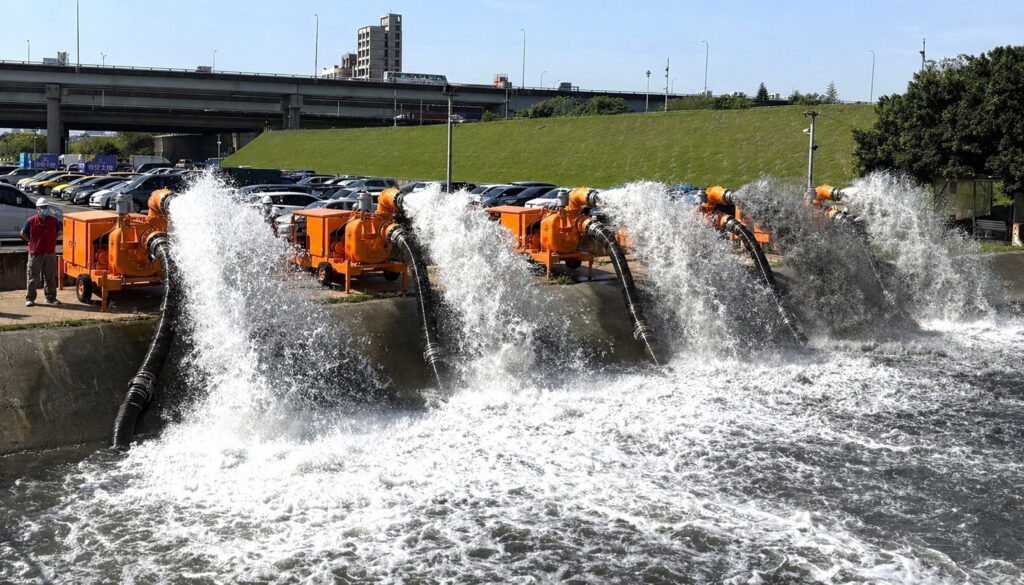 新北市計有移動式抽水機八十台,可因應不同淹水事件使用,達到快速搶救災效果。 (新北水利局提供)