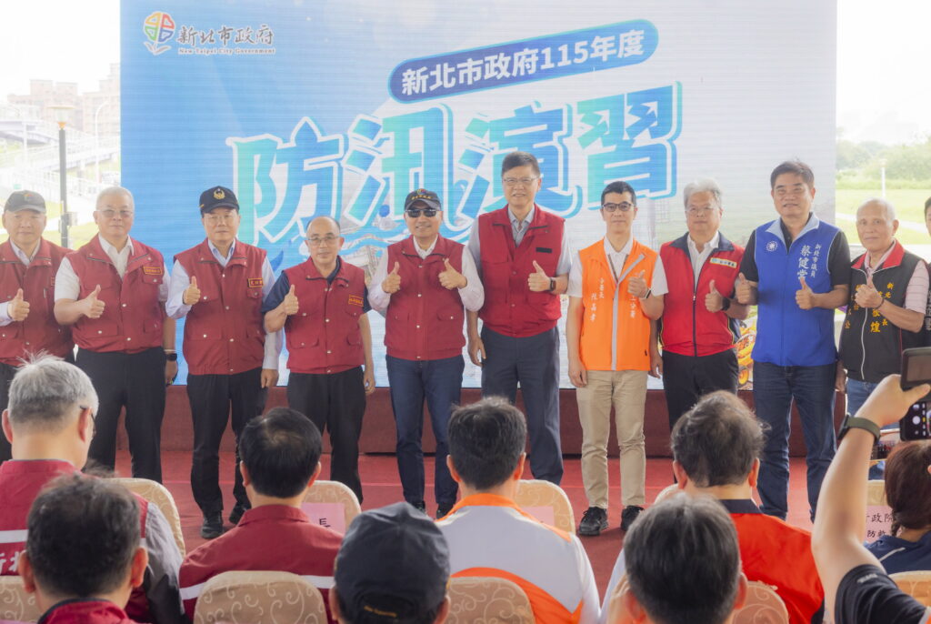 新北市府水利局「一一五年度防汛演習」昨在新莊塔寮坑抽水站堤外高灘地舉行。 (新北水利局提供)